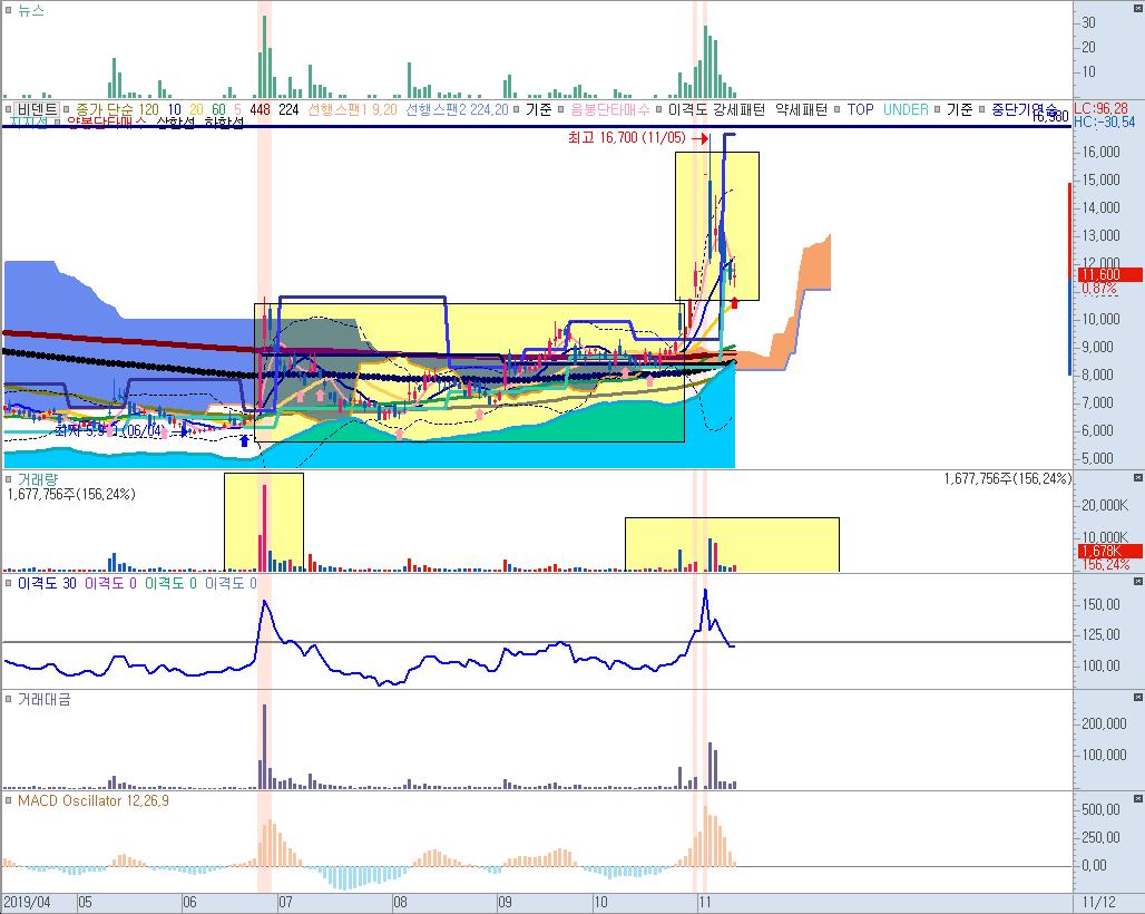 지속적으로 2016년도 당시의 매물대를 두들기고 주가를 아래로 빼면서 매물을 소화하는 듯한 모습을 보여줍니다.