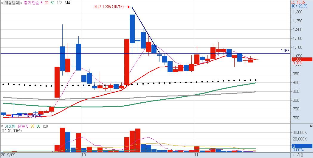최근에 스윙 관심종목으로 추가해두었던 대성엘텍입니다.