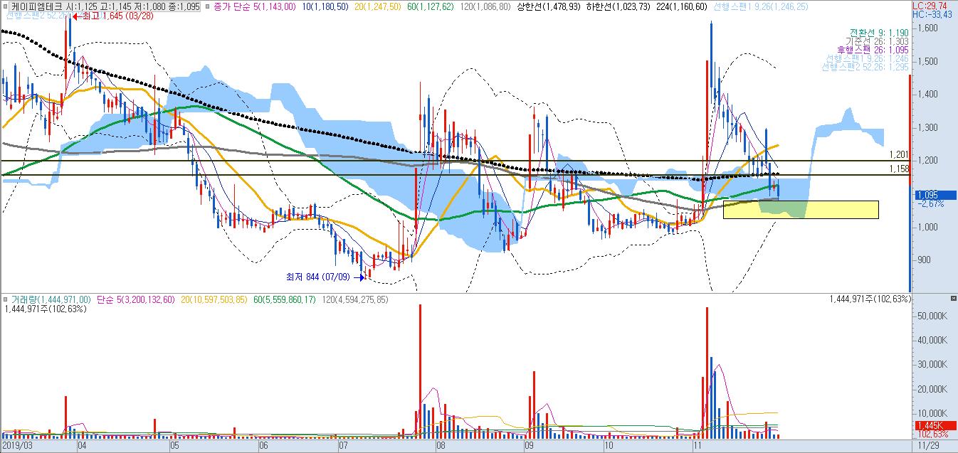 일전에 케이피엠테크 관심종목으로 두면서 드렸던 차트였습니다.