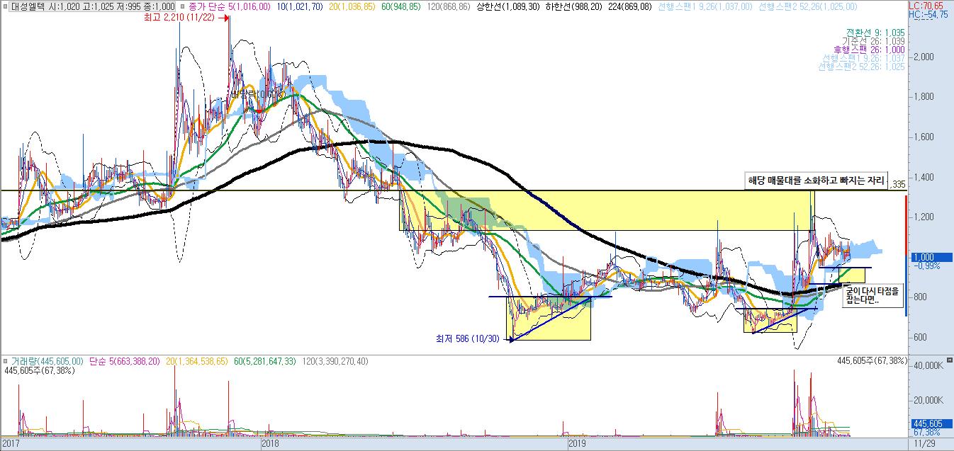 굳이 다시 매수 타점을 잡는다고하면 950원 이하에서 다시 잡아보는게 낫습니다.
