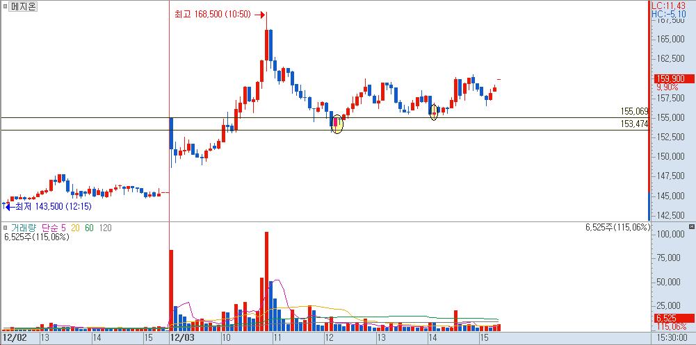 오늘 메지온 분봉차트는 정말 공부할 것이 많은 차트라고 생각을 하고 있습니다.