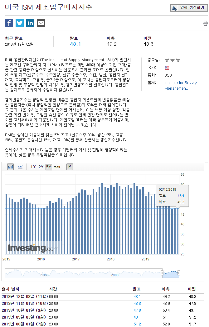 나스닥이 12월 2일 ISM 제조업 구매자 지수가 예상치를 하회하면서 약 -1.45% 하락을 보였습니다.