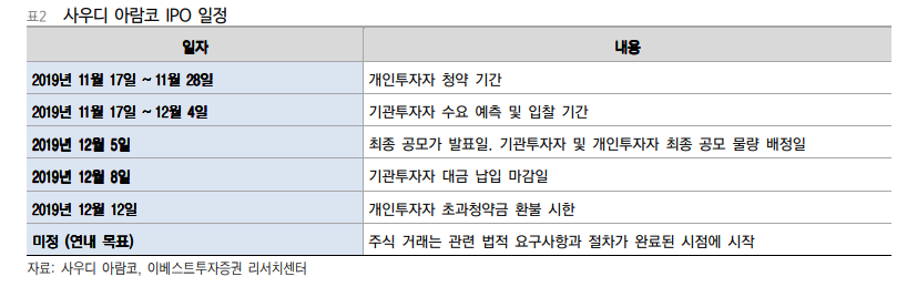어제 아람코 IPO 일정도 마무리 된 만큼,