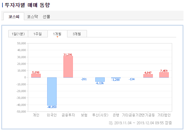 수많은 애널리스트들이 11월 초중반은 MSCI 리밸런싱의 영향으로 외국인의 매도세가 지속되고 있다고 분석을 하였고, 저 또한 한국증시에 대한 MSCI 지수 조정으로 외국인의 투자 심리 위축을 제일 큰 원인으로 생각을 했습니다.