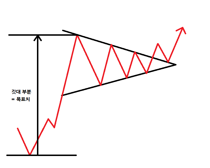대칭삼각형 패턴이 만들어지 지기 이전의 한개 파동을 깃대 라고 표현을 합니다.
